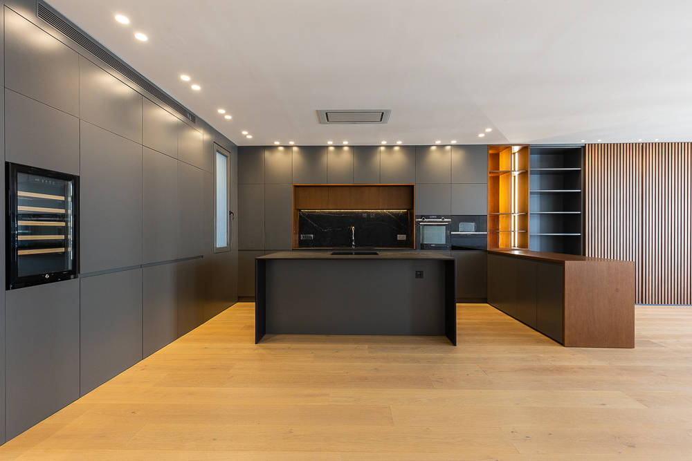 Una de nuestras intervenciones más ambiciosas, ubicada en pleno centro. El proyecto destaca por sus impresionantes ventanales, que inundan los espacios de luz natural, y por unos acabados cuidados al detalle, donde elegancia y calidad se combinan para crear una vivienda única y sofisticada.